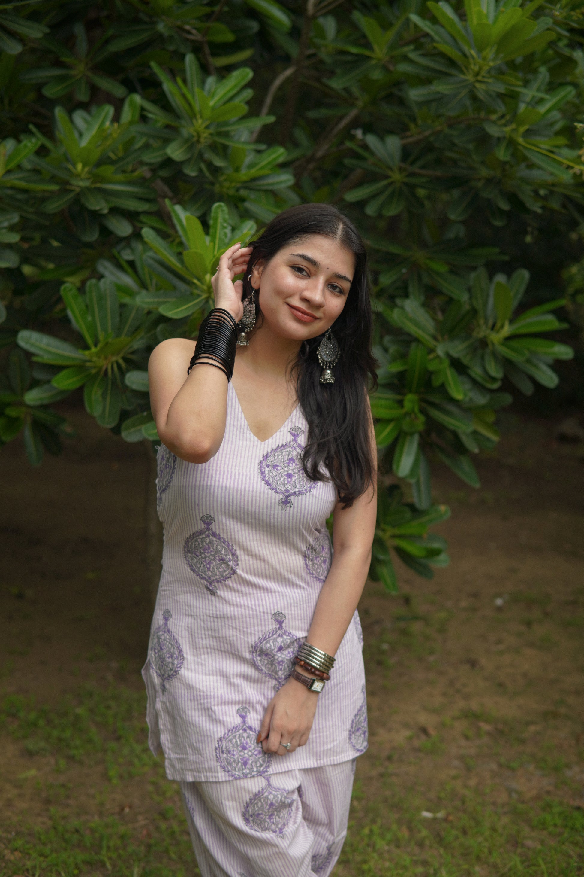 Immerse yourself in effortless charm with our lavender handblock set salwar set — a beautiful blend of traditional craft and contemporary flair. In a dreamy lavender hue, this three-piece ensemble is adorned with intricate handblock prints, capturing the poetry of pastel mornings and handcrafted grace.