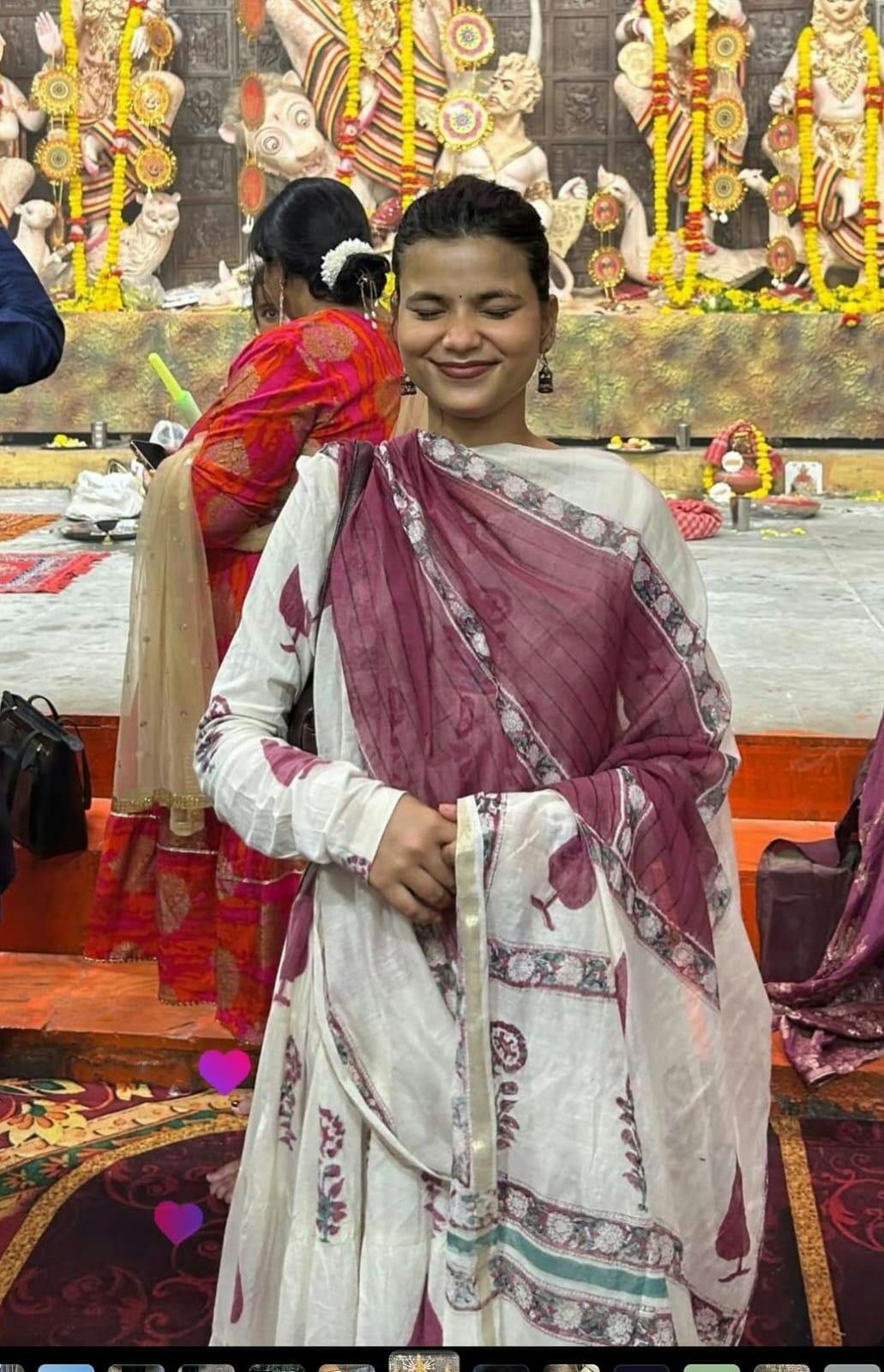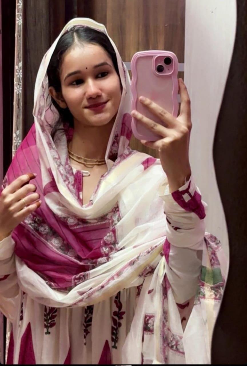 Elevate your ethnic wardrobe with this White Tilak Tiered Anarkali Set, crafted in soft cotton handblock fabric for a flowy and graceful silhouette. The set features a tiered design for added flare and a covered back for a modest finish. Paired with a beautiful 2.5-meter Chanderi dupatta, it’s ideal for festive and traditional occasions.