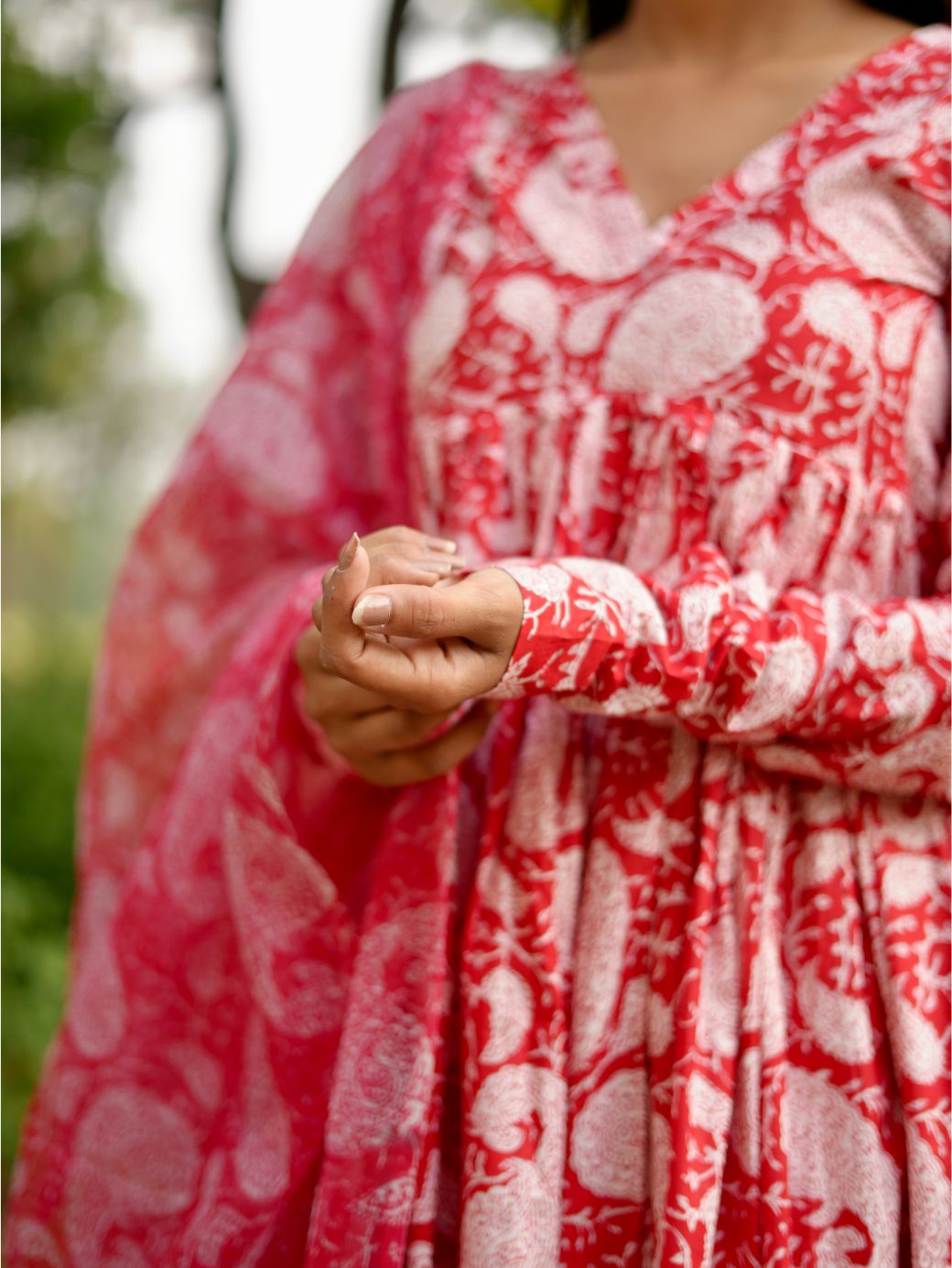 A timeless Anarkali set that blends breathable cotton with effortless style, ideal for all-day wear.