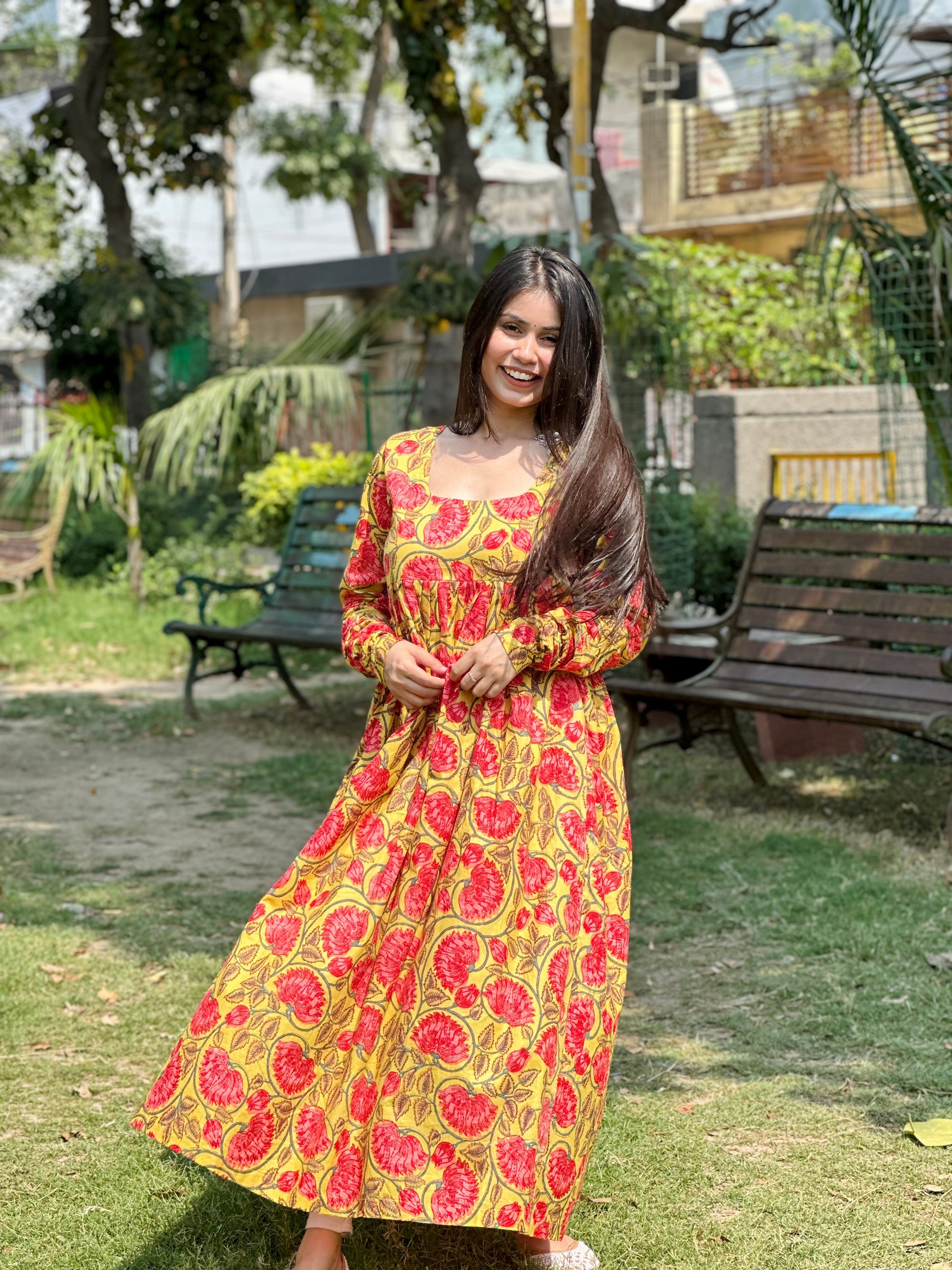 Elevate your festive look with the vibrant charm of the Basant Kameez by krutico. Crafted from premium mule cotton, this kameez is designed to offer both comfort and style. With a flattering 47-inch length and an expansive four-meter flare, it exudes elegance and freedom of movement. The exquisite handblock print adds an artisanal touch, while the easy-to-wash fabric ensures minimal maintenance. Proudly made in India, this piece celebrates traditional craftsmanship and modern design.