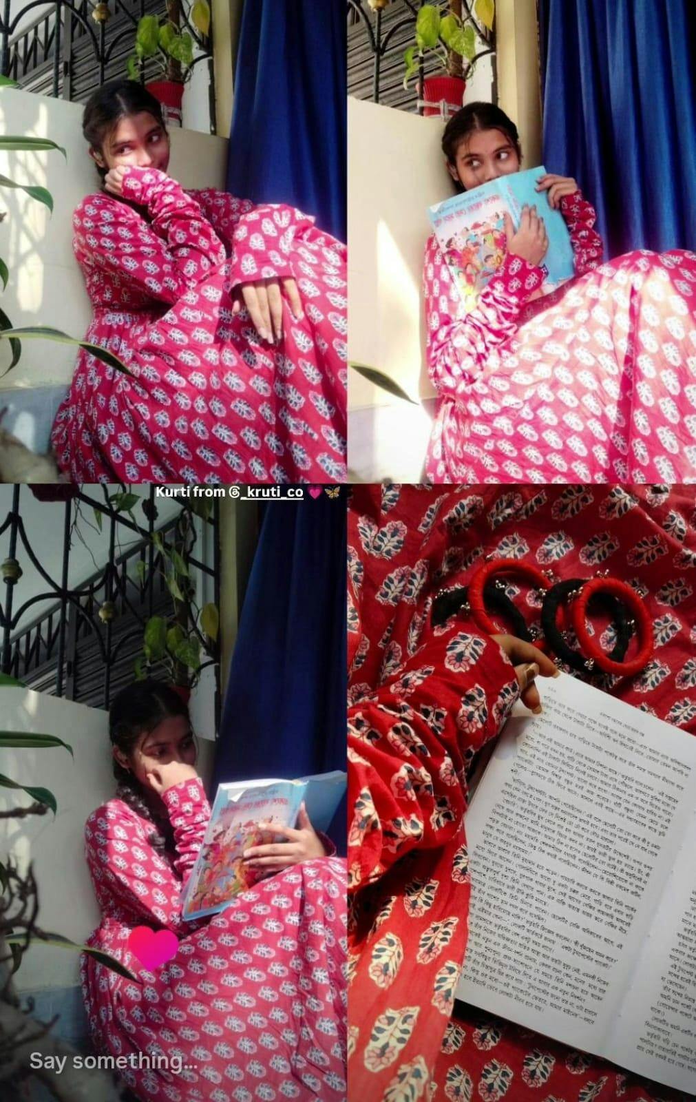 The highlight of this piece is its voluminous ghera (flare)—ideal for those slow spins, festive entries, or just lounging in style. The pleated waist gives the outfit dimension without compromising on comfort.