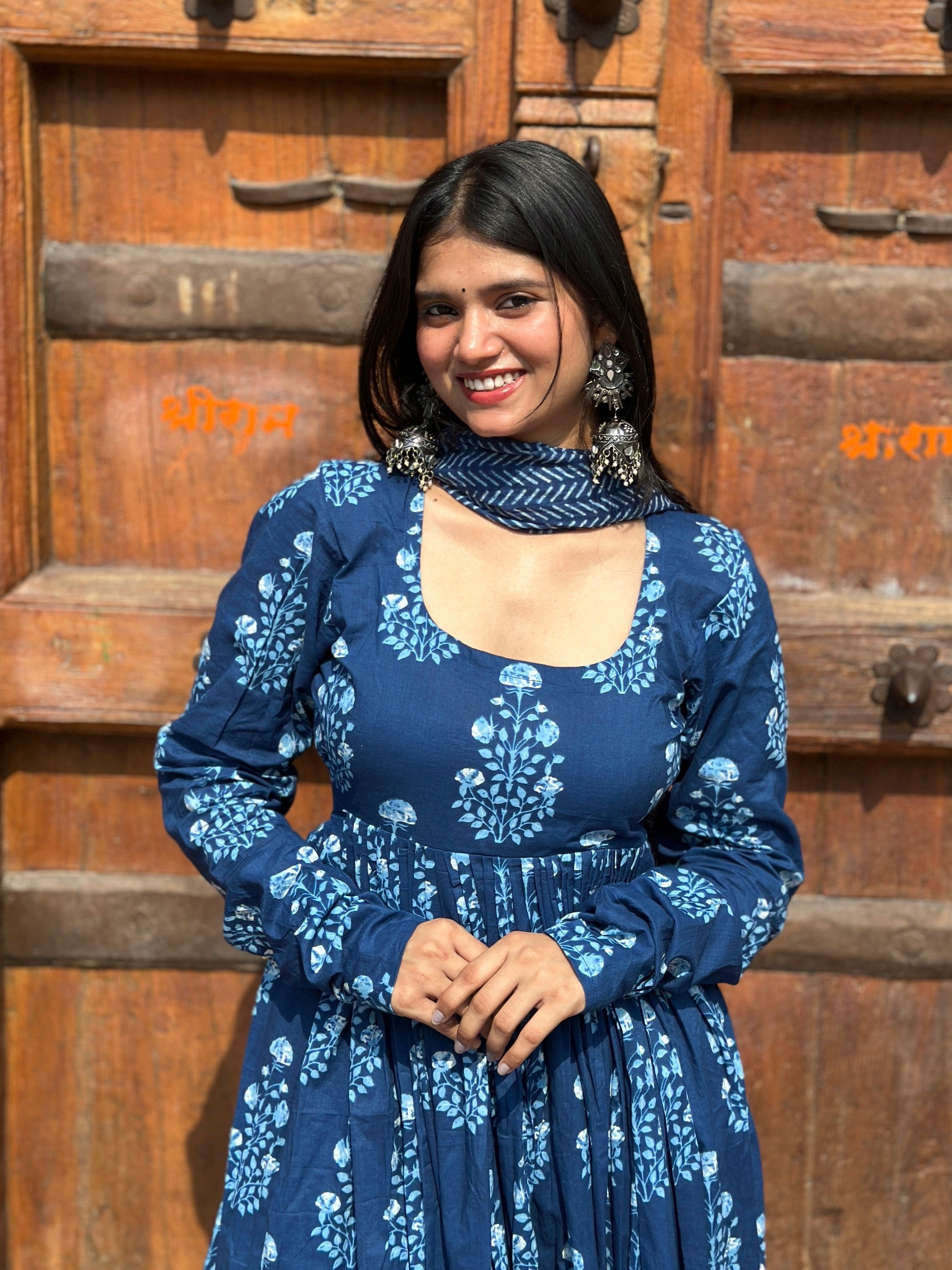 Graceful and flowy, the Tashi Set is a three-piece Anarkali ensemble crafted in soft mul cotton with an extra flare for that elegant fall. Paired with a lightweight cotton dupatta, it's perfect for festive mornings and everyday elegance.