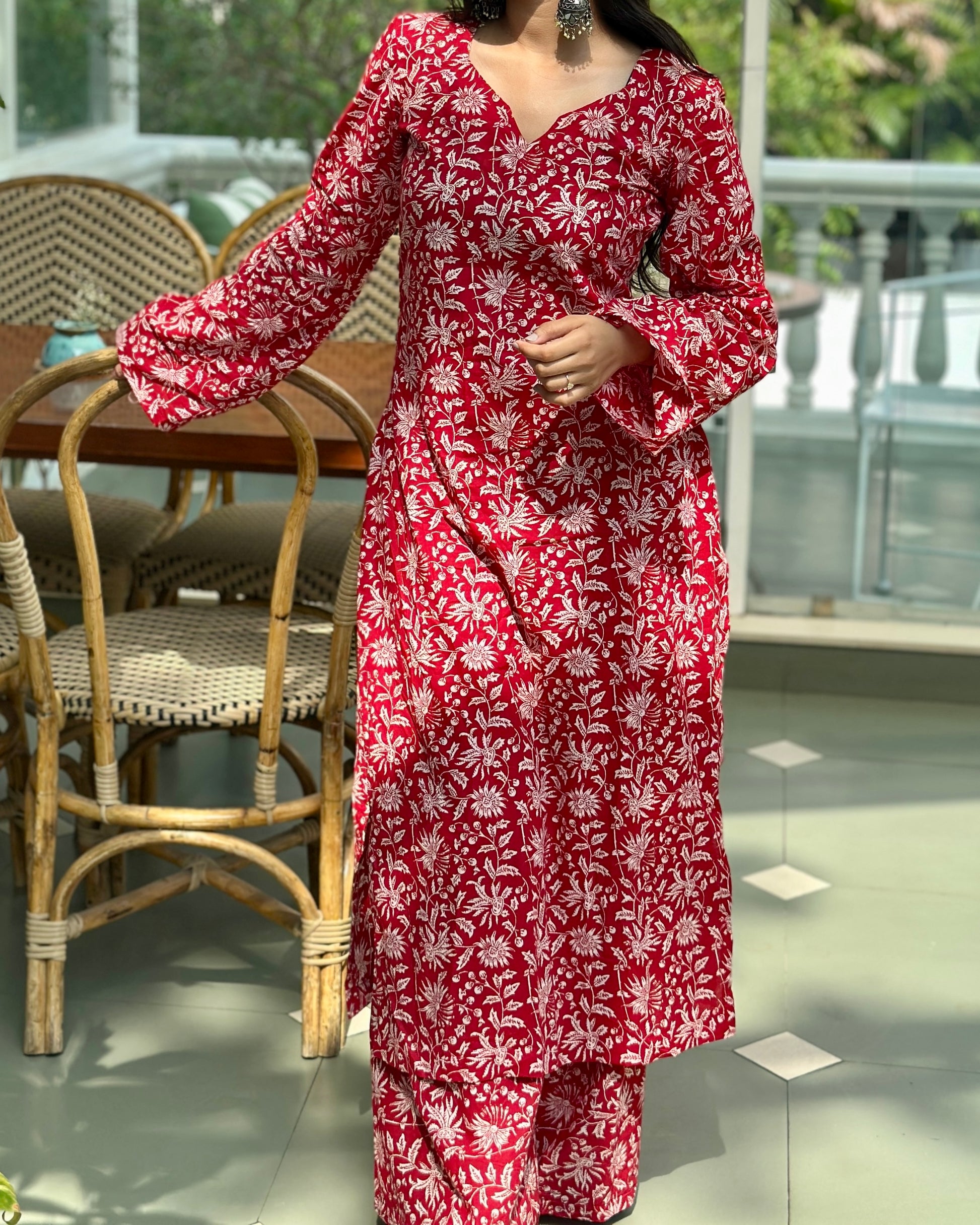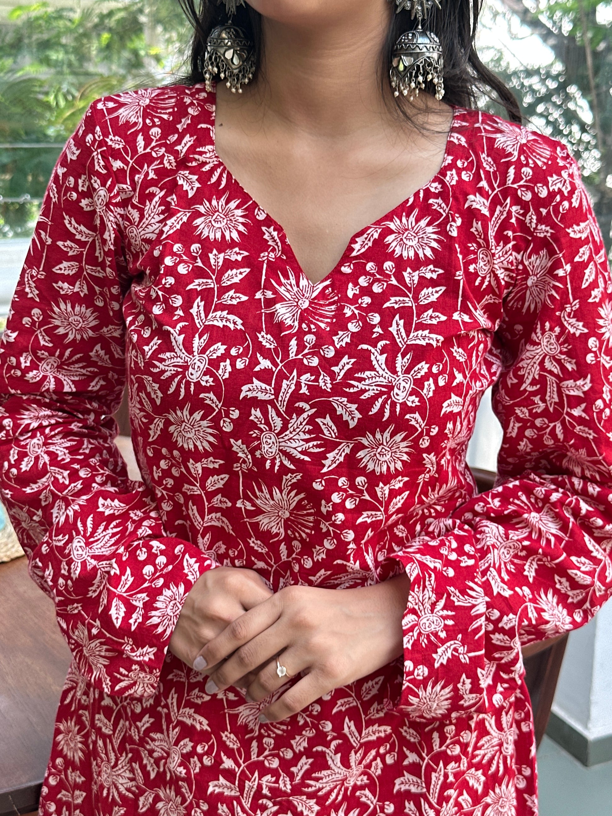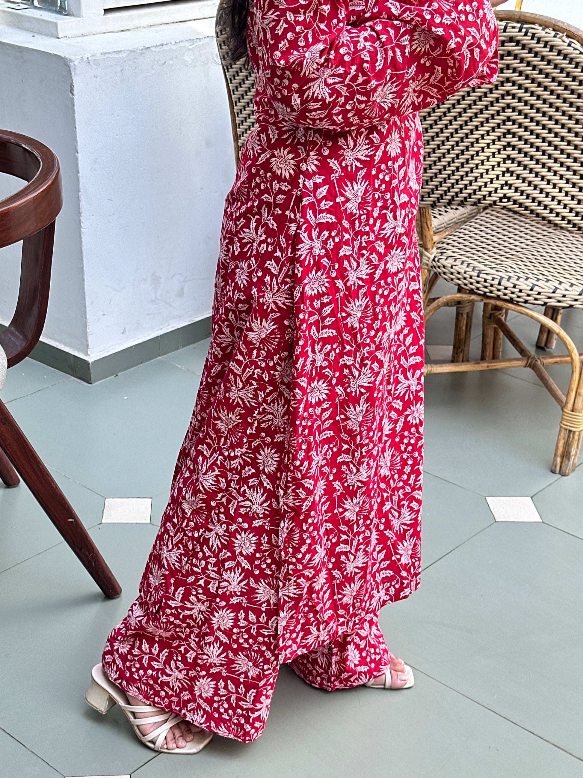 - Fabric: Cotton handblock (kurta & pants)